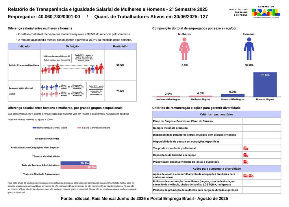 Relatório de Transparência e Igualdade Salarial de Mulheres e Homens - 2º Semestre 2025